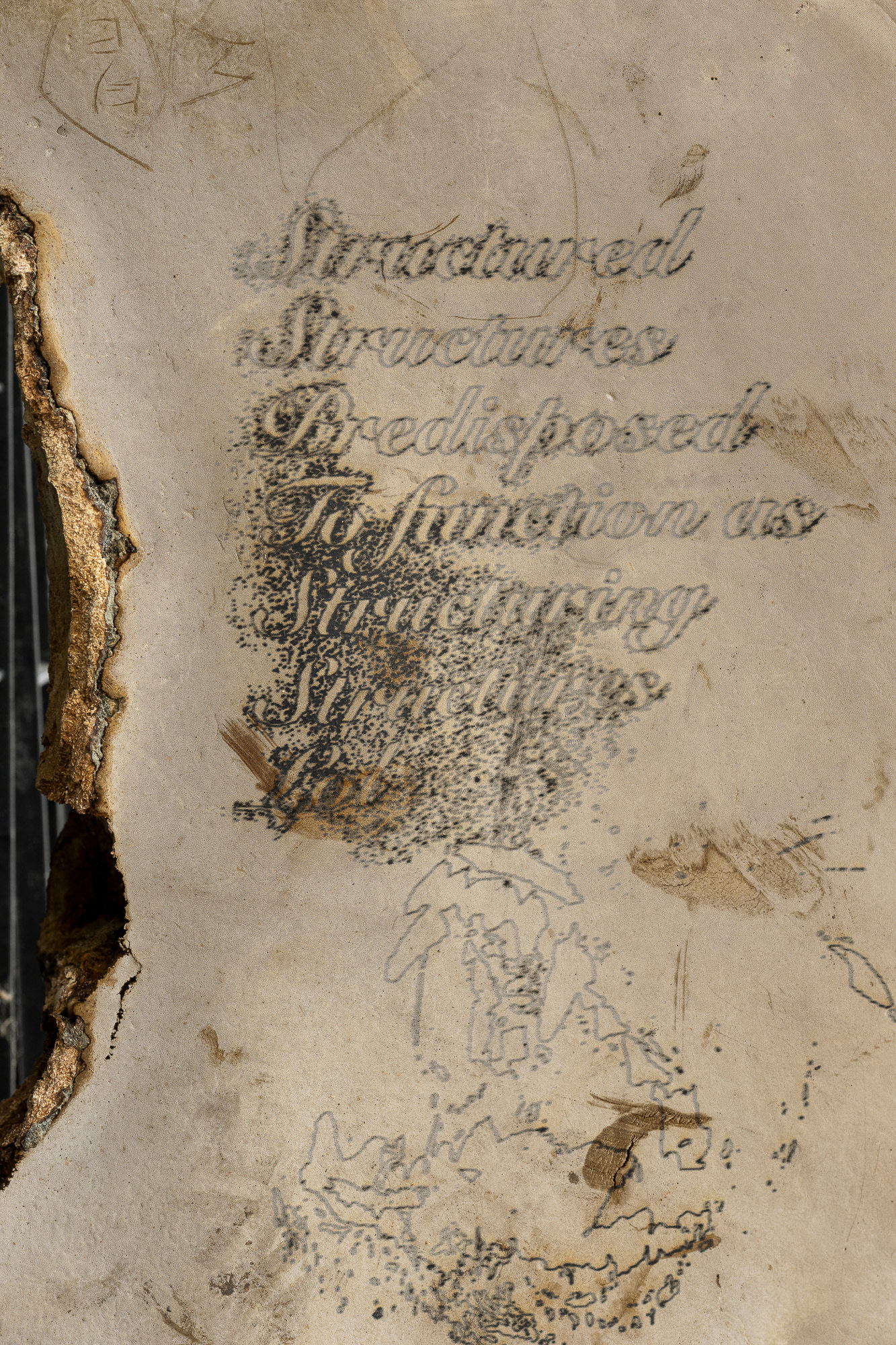 Material processes lie at the heart of Dávid Koronczi’s solo exhibition at VUNU Gallery in Bratislava. Image-making unfolds through techniques that recall photographic development and printing, expanded into sculptural and installation-based forms. Compressed wood chips, sawdust, shavings, and granulates – often drawn from household labor and the ongoing construction of the artist’s family home – become supports, surfaces, and image-producing agents. These materials sit alongside laser-carved graphics, pigment- and salt-modified substrates, and photographic studies of Eat Art residues. Rather than aiming at fixed images, Koronczi emphasizes process, where manual work and technical systems, chance and control, and human and non-human actors meet.